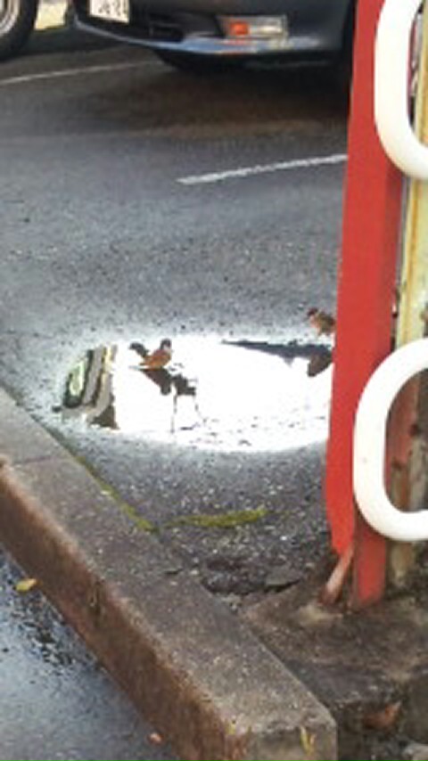 水たまりでぱしゃぱしゃしてた。