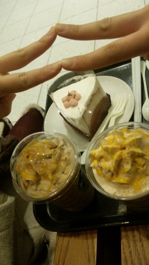 オレンジブリュレフラペチーノとさくらシフォンケーキなう!