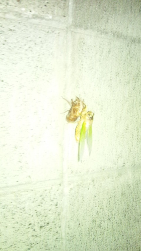 脱皮中のせみ発見。