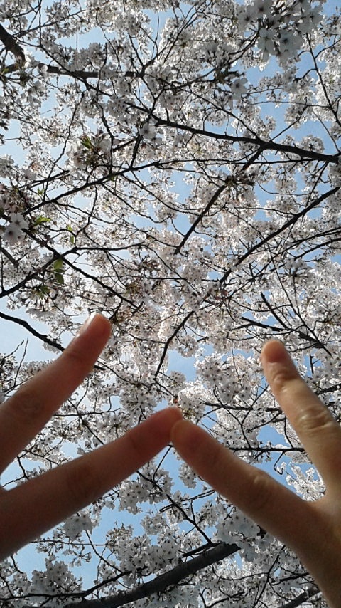 去年と同じ、桜を見上げられるベンチで(*´∇`*)